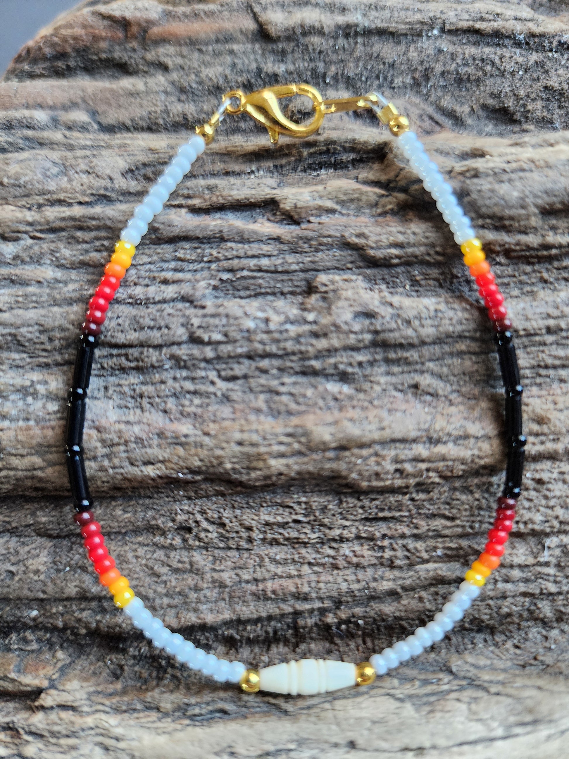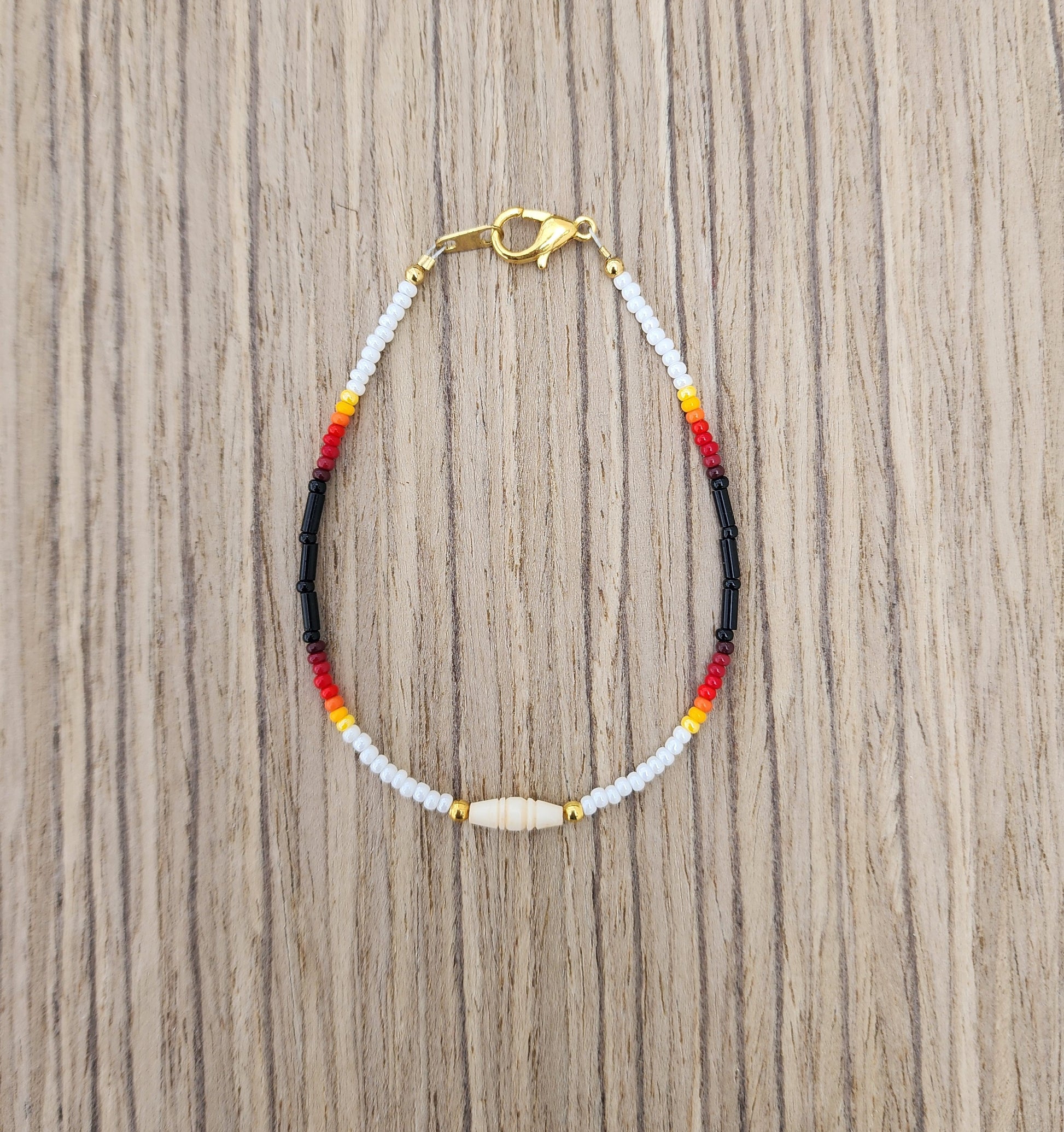This beaded bracelet is authentically handmade on the Pine Ridge Indian Reservation by Native artist Angela Twiss. Each piece is carefully crafted bead by bead using a consistent, intentional design developed by Angela and made to order in your selected size.