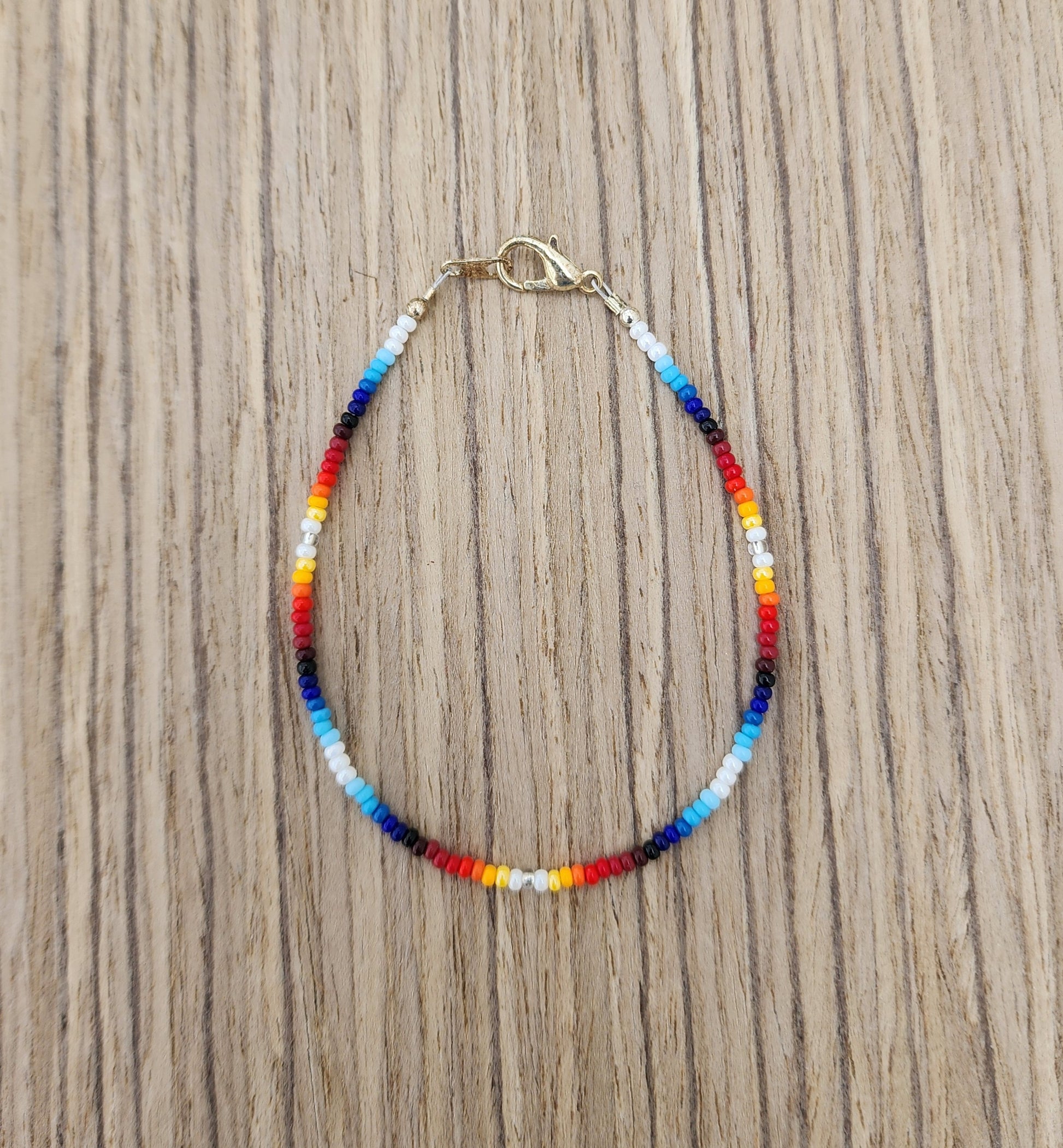Because every bracelet is created by hand rather than mass-produced, subtle variations may occur while maintaining the same overall pattern and design. These differences are a natural part of traditional handmade beadwork. Using size 11 glass beads, wire and clasps.