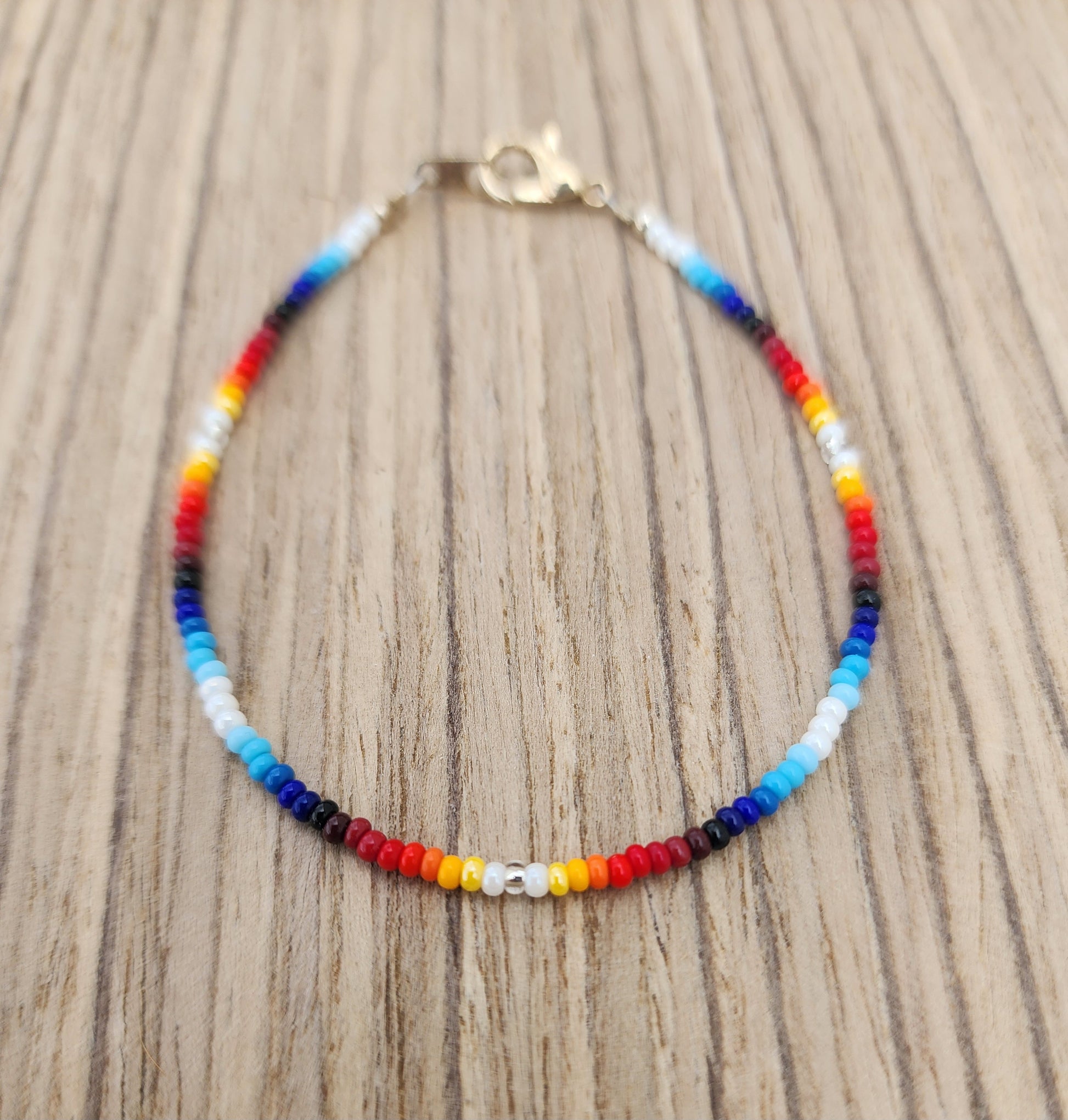 This beaded bracelet is authentically handmade on the Pine Ridge Indian Reservation by Native artist Angela Twiss. Each piece is carefully crafted bead by bead using a consistent, intentional design developed by Angela and made to order in your selected size.