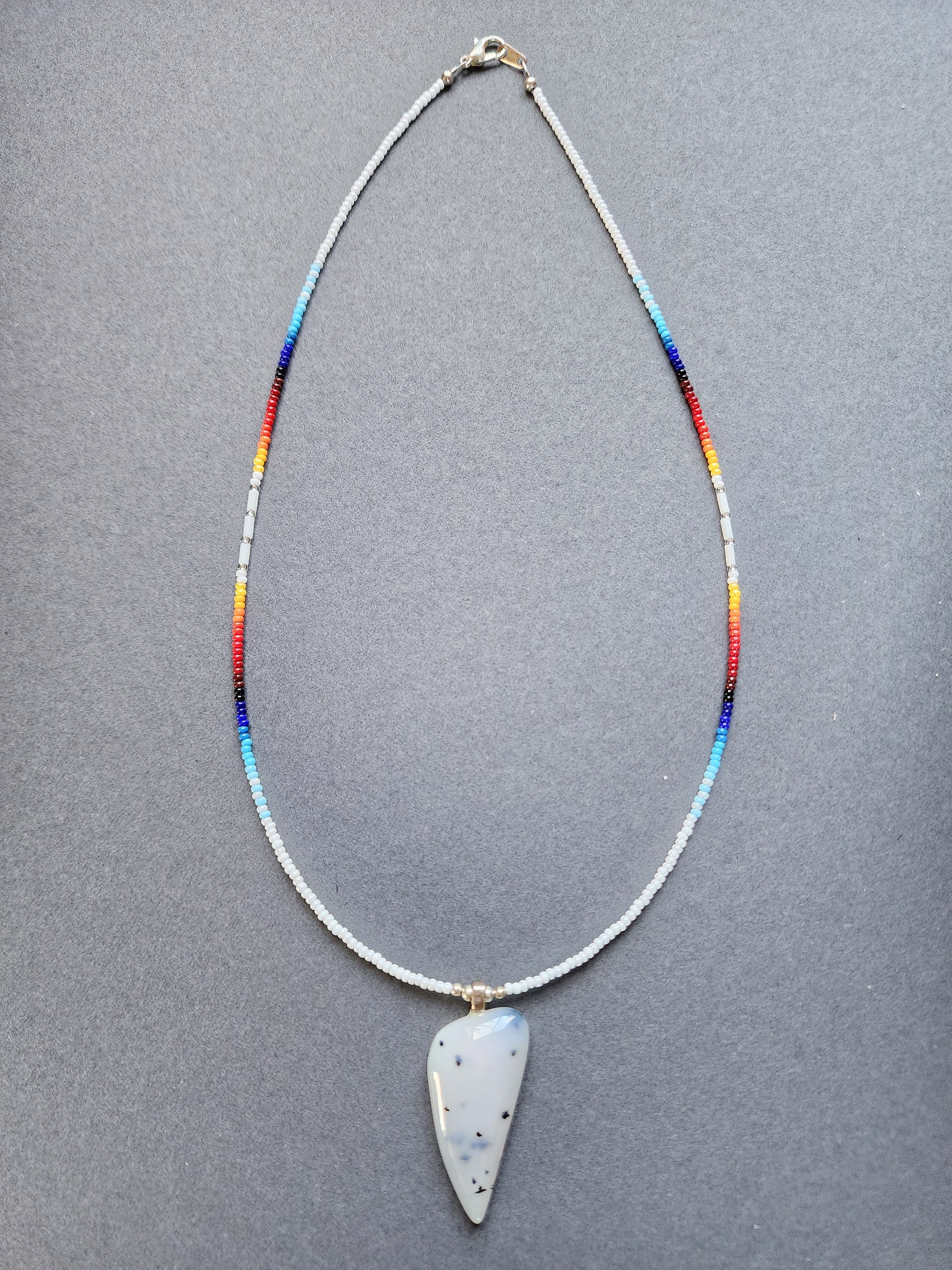 Because every necklace is created by hand rather than mass-produced, subtle variations may occur while maintaining the same overall pattern and design. These differences are a natural part of traditional handmade beadwork using size 11 glass beads, wire and clasps.